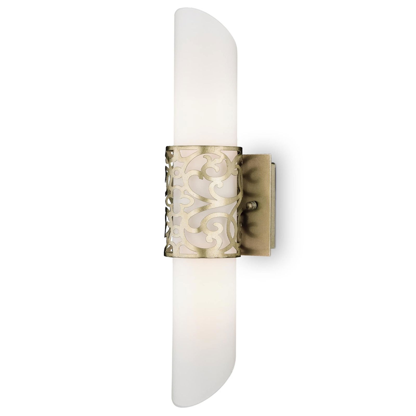 - Two white glass shades with a fluted shape.