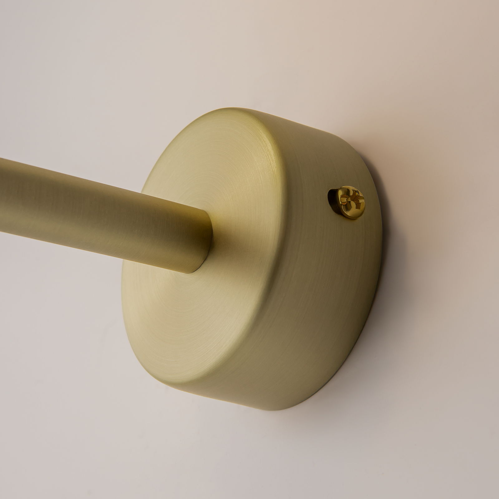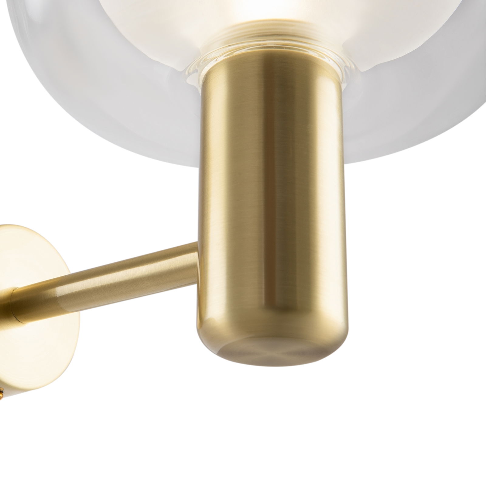 - Gold-finished metal arm and wall plate.
